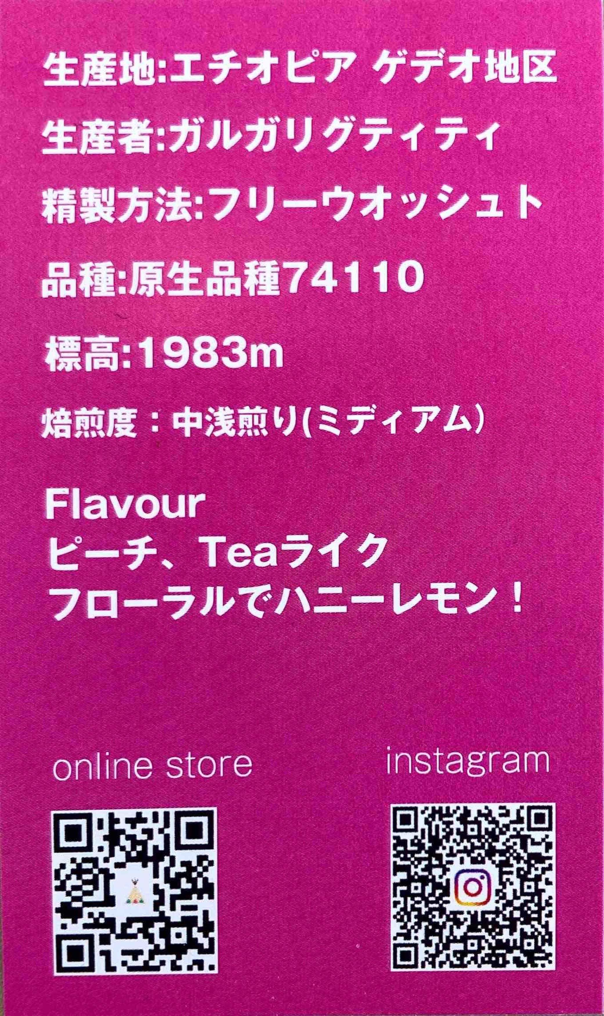 原 産 国 : エチオピア SNNPR州 ゲデブ地区